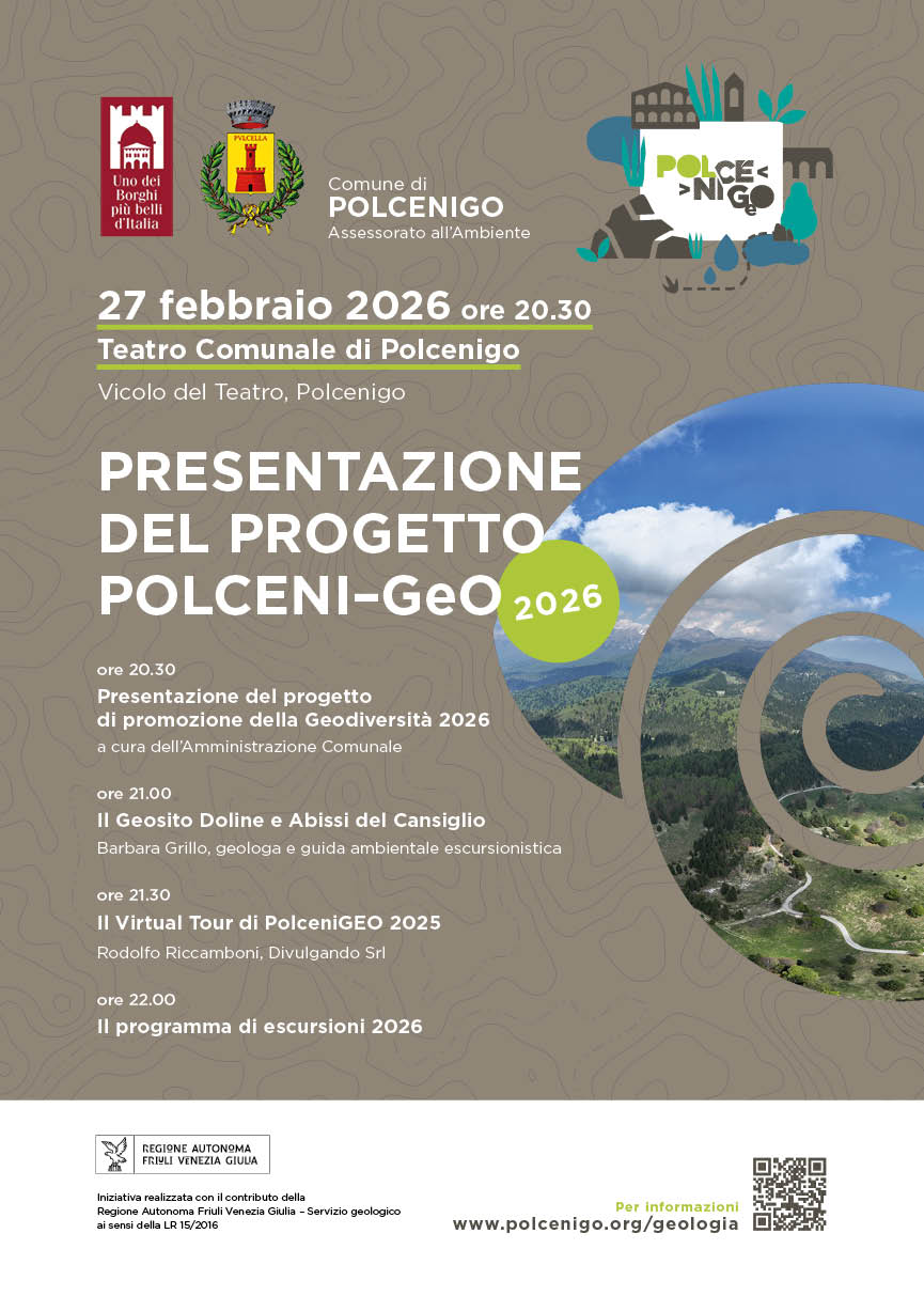 Anche nel 2026, grazie al contributo della Legge Regionale 15/2016, il Comune ha dato seguito al progetto di divulgazione scientifica Polceni-Geo, con l’obiettivo di migliorare la conoscenza dei geositi locali, promuovere la geodiversità e rendere più accessibile il patrimonio naturale attraverso strumenti innovativi, attività didattiche e iniziative per il pubblico.